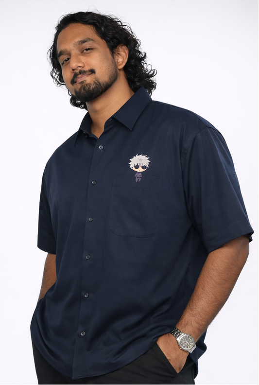 Jujutsu Kaisen Oversized Shirt – Cute Gojo Chest Embroidery in Navy | 100% Cotton 240 GSM