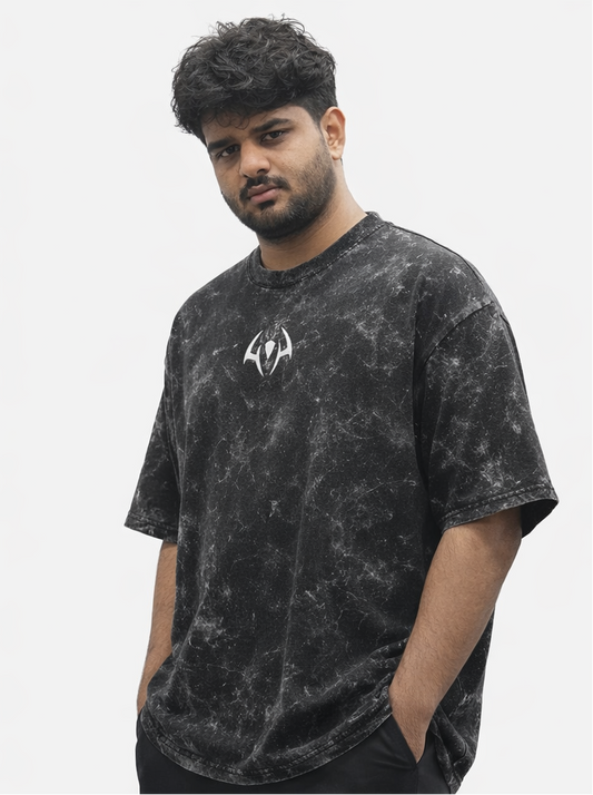 Jujutsu Kaisen Sukuna Acid-Wash Oversized T-Shirt – Mini Front Logo & Full Back Tongue Graphic | 240 GSM Cotton