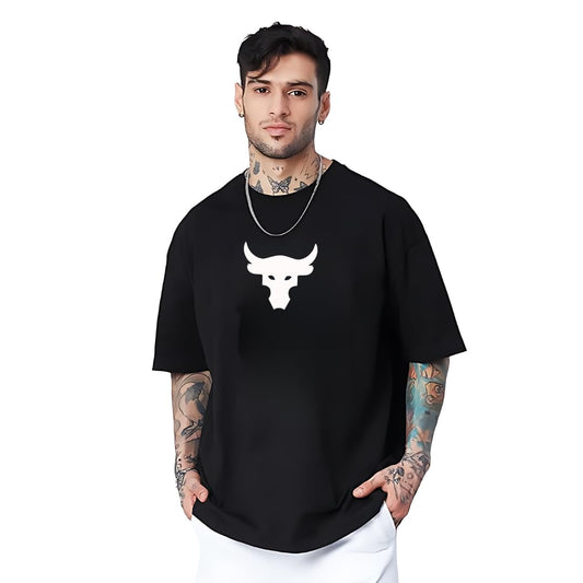 Amhype Men Half Sleeve Oversized Tshirt, Round Neck Longline Drop Shoulder, Colorful Printed Regular Fit T-Shirt